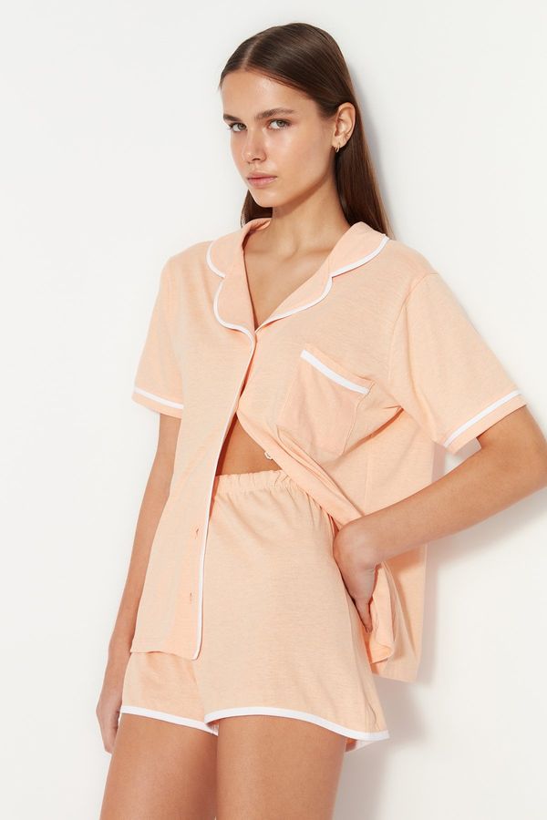 Trendyol ženska set pidžama.<br />- ko&scaron;ulja i kratke hlače<br />- udoban kroj<br />- mekana tkanina<br />Mjere modela (cm): visina: 177, grudi: 84, struk: 65, bokovi: 90.<br />Proizvod na modelu je veličine S/36.<br />Materijal: 100% pamuk