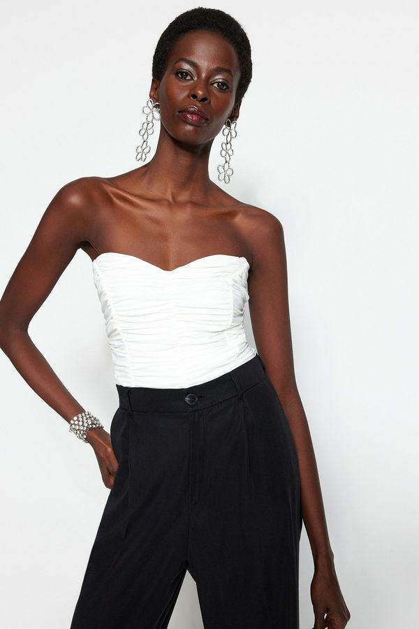 Ženski bodi marke Trendyol.<br /><br />Mjere modela: visina: 179 cm, prsa: 79 cm, struk: 59 cm, bokovi: 86 cm<br />Proizvod na modelu je veličine S/36.<br />Materijal: 97% poliester, 3% elastin